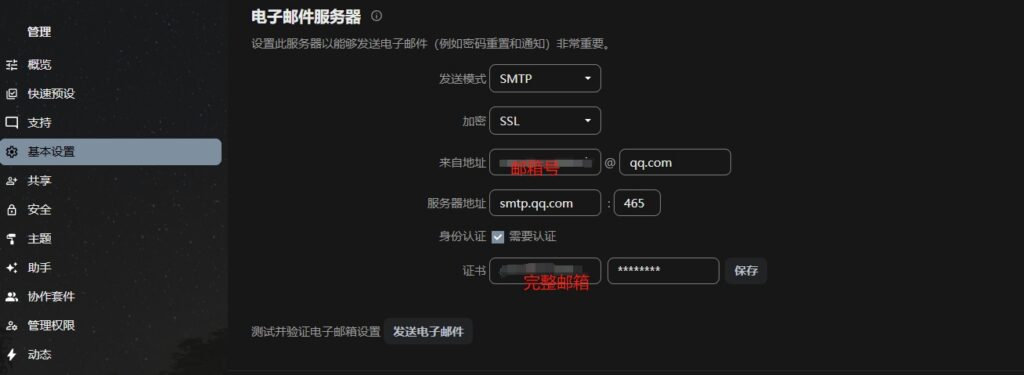 在开始之前插句题外话,你可能找到两个配置mail的地方,一个是后台的管理设置-基本设置这里,这个是发注册邮件的那个邮箱配置: